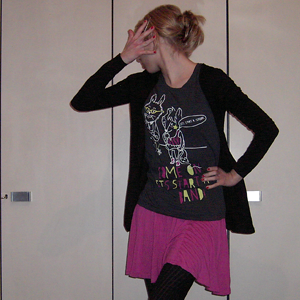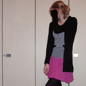 Tag 175 (28.12.2010): Bluse und Hose H&M, T-Shirt Gina Tricot, Strumpfhose C&A, Fotoapperatkette KoolKatKustom