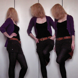 Tag 252: Strickjacke Mister*Lady, Top, Shorts und Gürtel Primark, Strumpfhose Gina Tricot, Schuhe Lili