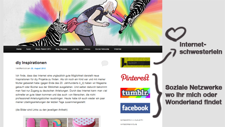 Vielleicht ist es euch schon aufgefallen, aber die rechte Navigationsleiste verändert sich in letzter Zeit immer ein bisschen. Im Moment findet ihr dort einen Link zu Bloody Cross – meiner kleinen Internetschwester Nin-chan – und zu diversen sozialen Netzwerken in denen ich selbst oder Wonderland vertreten sind. Schaut doch Mal vorbei. Über Freundschaftsanfragen freue ich mich immer ^^