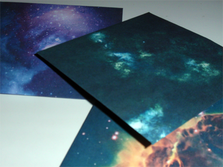 Zunächst sucht ihr euch Fotos heraus, auf denen man Galaxien sehen kann (am schnellst geht dies über google und den Suchbegriff Galaxy). Ich bin unter anderem auf den Seiten desktopwallpaper-s.com und hidefwallpaper.org fündig geworden. Diese Fotos druckt ihr nun im Din-A4 Format aus (achtet bei der Qualität der Bilder darauf, dass sie nicht zu gestreckt nach dem drucken wirken).