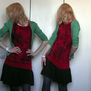 Tag 184 (05.01.2011): Strickjacke Pimkie, Oberteil H&M, Rock selbstgemacht von meiner Mum, Strumpfhose C&A