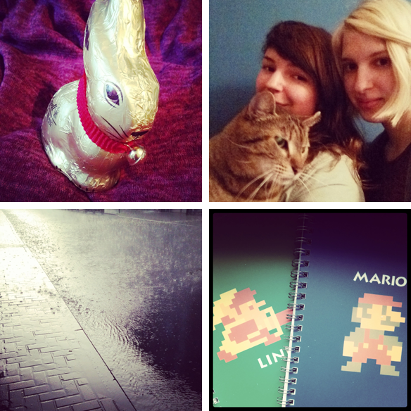 Mein Wohnzimmer in eine riesige Höhle verwandelt, wundervolle Gummistiefel gekauft, meine neuen Gummistiefel zu einem schwarzen Outfit kombiniert und den Kater in eine Ananas verwandelt.
