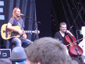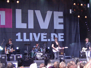 Zunächst haben wir Bakkushan angeguckt. Die Band hat mich Mal irgendwann (vor knapp drei Jahren) bei Myspace hinzugefügt (um mehr Hörer zu haben…) und seit dem war ich ein Fan. Vor kurzem ist ihr erstes Album Baby du siehst gut aus erschienen und daraus sind die Singelauskopplungen Baby du siehst gut aus und Lass die Sonne und mich allein erhältlich. Bald tritt die 2007 gegründete Band beim Bundesvisionsongkontest von Prosieben mit ihrem Lied Springwut für Baden-Württemberg gegen Ich+Ich, Stanfour, Selig und Unheilig an. Auf ihrem 45 minütigen Konzert bei Bochum Total überzeugten sie komplett mit rockiger Indiemusik. Die vier brachten die große Menge vor der 1Live Bühne zum Springen, Tanzen und wilden Mitsingen. Die Stimmung war ausgezeichnet und das merkte man nicht nur der Menge, sondern auch der Band an, die begeistert die Lieder des Albums so wie den Titel Ich liebe es spielten.