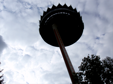 Die Aussichtsplattform, welche sich drehend nach oben bewegte.