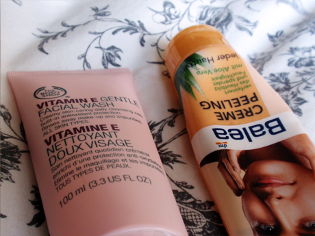 Die Body Shop Produkte mag ich sehr. Sie riechen nicht nur gut, sondern helfen merklich. Gerade auch für trockene Haut ist die Vitamin E Serie praktisch. Peeling gibt es dann circa einmal die Woche. Das Aloe Vera beruhigt die Haut und spendet Feuchtigkeit. Zusätzlich verwende ich das Aloe Vera Serum von The Body Shop, damit meine Haut nicht gänzlich austrocknet.