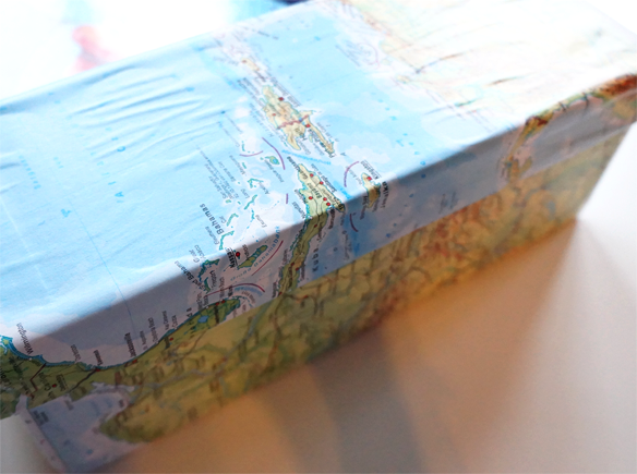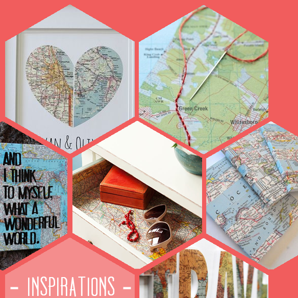 Ich liebe es zu Reisen und ich liebe Landkarten. Eine Vorliebe, die dafür gesorgt hat, dass ich als Kind zu ungefähr jedem Gelände eine Karte gezeichnet habe. Leider war keine davon besonders gut, aber darum soll es in diesem Beitrag auch nicht gehen. Im Internet findet man immer wieder wunderbare Anleitungen, bei denen diverse Dinge mit Landkarten verziert werden. Dazu gehören zum Beispiel diese: