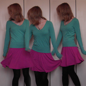 Tag 117: Ketten (Anhänger alter Fotoapperat und Kasette) Kool Kat Kustom, Oberteil udn Rock H&M, Strumpfhose C&A