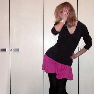 Tag 230 (20.02.2011): Pulli Avanti, Rock H&M, Strumpfhose C&A, Uhr Fossil, Ring Accessorize