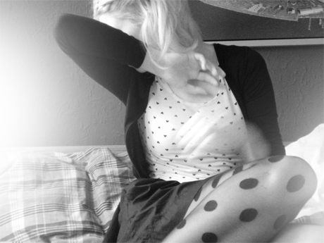 Dazu trage ich eine Strickjacke von Pimkie und – nicht auf dem Bild – eine Wollstrumpfhose von H&M.